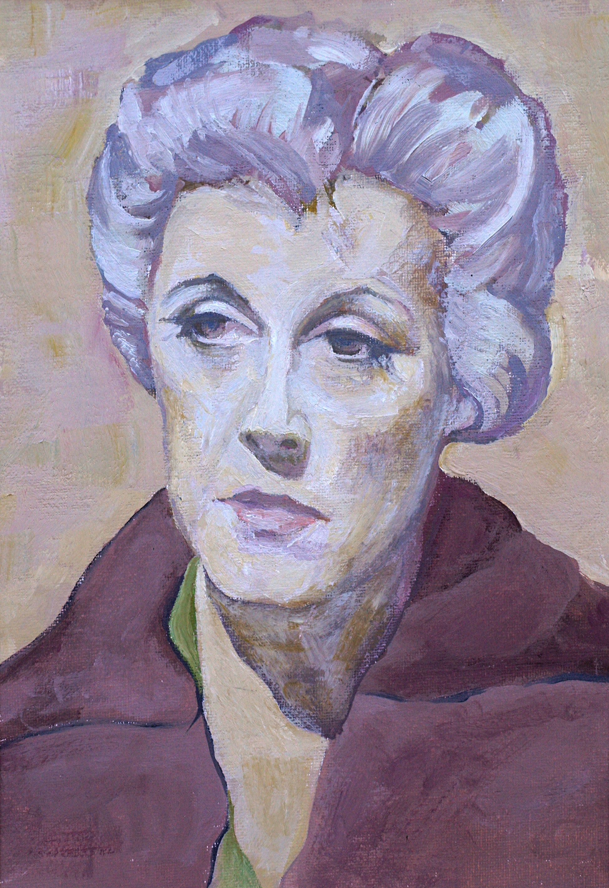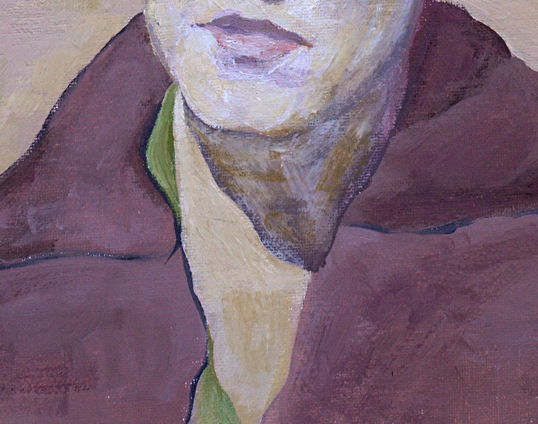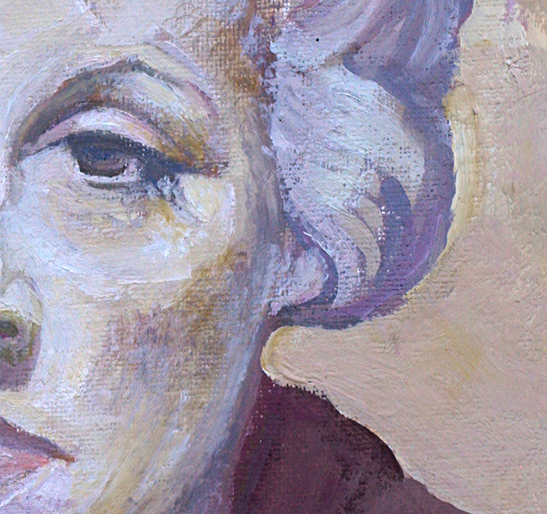 Drawn from a 1960s image, this painting captures a certain character, an archetype that feels both specific and universal—stark features blend with the softness of hair and clothing.